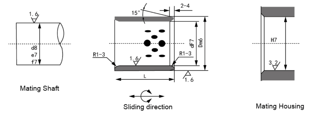 | JDB-3 | A JDB-3 sorozat termékeinek belső oldala ugyanolyan józan, mint a JDB-2 sorozatoké. így olyan jól működhettek, mint a JDB-2 sorozaté. kiegészítőben. További előnyük van, mint például az anyagköltség megtakarítása, a nyomószilárdság javítása, valamint az, hogy a persely felületének más mátrixszal történő összehegesztésével összeszerelhetők. Építőipari gépek, kohászati gépek és szállítógépek olajkenését nem igénylő alkatrészekhez alkalmasak. |