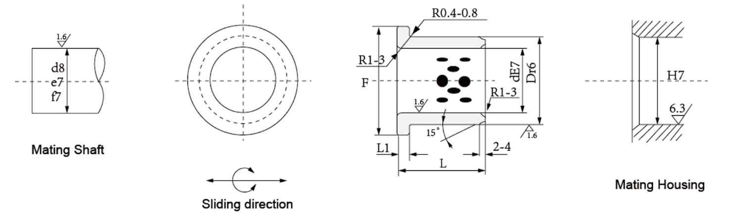 A HZ-JFB karimás grafit-réz persely beágyazott grafitot tartalmaz az önkenéshez poros, száraz vagy magas hőmérsékletű körülmények között. Karimás kialakítása megakadályozza az axiális mozgást, és leegyszerűsíti a beszerelést szivattyúkba, szállítószalagokba vagy gépjármű-kormányszerelvényekbe. A réz-grafit mátrix csökkenti a súrlódást és a kopást, míg a karima javítja a terheléselosztást és a beállítási pontosságot.